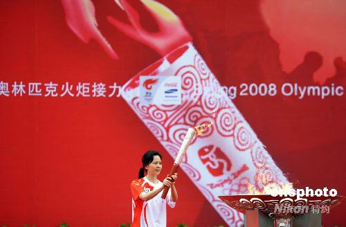 圖:世界冠軍范雪平點(diǎn)燃圣火盆