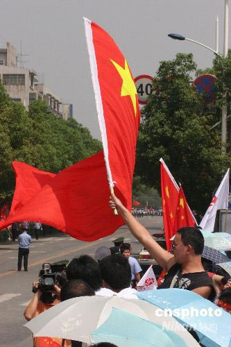 圖:蕪湖群眾揮舞國旗歡迎奧運圣火