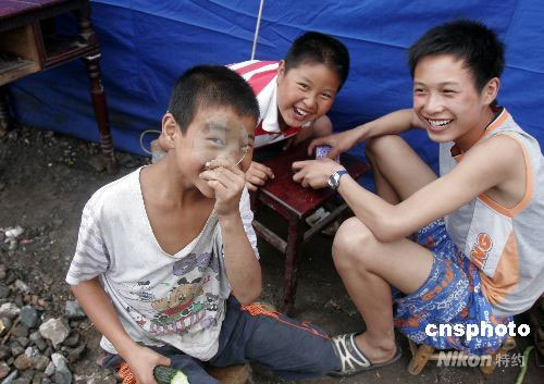組圖:地震災(zāi)區(qū)孩子漸露童真笑臉