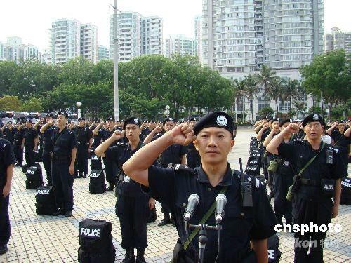 5月31日上午8時(shí),?200名特警南港碼頭登船出征,奔赴四川抗震救災(zāi)。此次出征特警要到達(dá)四川德陽(yáng)市,為期3個(gè)月,主要職責(zé)是協(xié)助當(dāng)?shù)毓矙C(jī)關(guān)巡邏防控、打擊違法犯罪活動(dòng)、恢復(fù)110、119、122接處警和服務(wù)災(zāi)民工作。中新社發(fā) 付美斌 攝