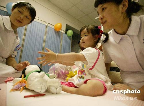 “小馨懿”來了!這個(gè)曾被四川北川廢墟壓了40多個(gè)小時(shí),溫總理為她讓路、江蘇省醫(yī)生為她截肢的3歲女孩,頑強(qiáng)地昭示著人間的愛與感動(dòng)。5月31日晚,她乘飛機(jī)抵達(dá)南京,入住江蘇省人民醫(yī)院,繼續(xù)接受治療。中新社發(fā) 吳俊 攝