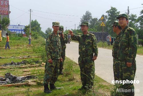 唐家山堰塞湖對(duì)綿陽(yáng)市境內(nèi)的蘭成渝輸油管道大動(dòng)脈形成重大威脅,6月4日,成都軍區(qū)一舟橋部隊(duì)的600余名官兵已迅速抵達(dá)江油市九嶺鎮(zhèn),對(duì)該輸油管道進(jìn)行搶險(xiǎn)保通任務(wù)。中新社發(fā) 霍潺 攝