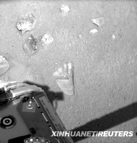 “鳳凰”號探測項目經(jīng)理戴維·斯潘塞6月1日說,機械臂與火星的第一次接觸為之后的采集土壤和向其他科學儀器傳送土壤樣品做好了準備。由于機械臂形狀特殊,其在火星留下的“第一痕”類似于人類腳印。 新華社/路透