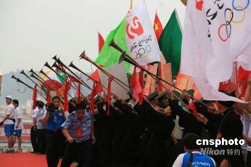 圖:瑤族長號奏響樂章迎圣火
