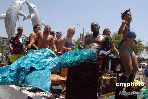 當?shù)貢r間六月八日(周日),洛杉磯數(shù)千名同性戀者及其支持者在西好萊塢的圣塔莫妮卡大道上參加第三十八屆“同性戀自豪大游行”,沿途有十幾萬民眾觀看游行。美國加州高等法院上個月通過了同性戀婚姻合法化的最終決定,從而使加州成為美國第二個允許同性戀伴侶結(jié)婚的州。中新社發(fā) 張煒 攝