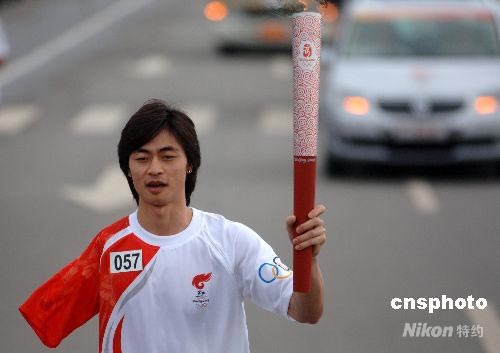 6月10日,奧運圣火在云南麗江傳遞,57號火炬手殘疾運動員王曉福傳遞火炬。中新社發(fā) 廖攀 攝