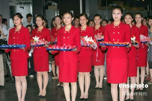 圖:15位準(zhǔn)空姐北京演練奧運(yùn)頒獎儀式 (4)