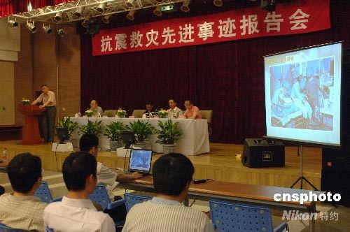 圖為僑辦系統(tǒng)抗震救災(zāi)先進(jìn)事跡報(bào)告會的現(xiàn)場。中新社發(fā) 鄒憲 攝