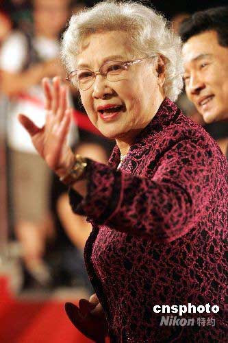 中國(guó)著名藝術(shù)家、女明星泰斗、87歲的秦怡,出現(xiàn)在愛(ài)心大道上,受到人們歡呼。據(jù)介紹,此次四川地震,秦怡向?yàn)?zāi)區(qū)捐贈(zèng)了她“全部家當(dāng)”。中新社發(fā) 潘索菲 攝