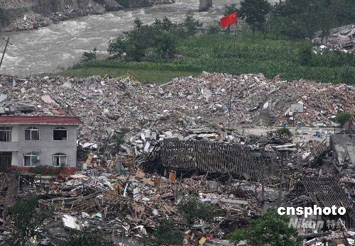 四川汶川大地震嚴(yán)重毀壞映秀鎮(zhèn),將映秀鎮(zhèn)小學(xué)幾乎全部摧毀為廢墟。中新社發(fā) 賈國(guó)榮 攝