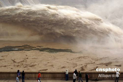 6月19日上午9時,黃河小浪底水庫開始實施調(diào)水調(diào)沙,這是自2002年以來黃河小浪底的第七次調(diào)水調(diào)沙。此次調(diào)水調(diào)沙,預計歷時12天左右,最大流量達到每秒3900立方米左右。調(diào)水調(diào)沙期間,小浪底、西霞院庫區(qū)全面封航。中新社發(fā) 平白 攝