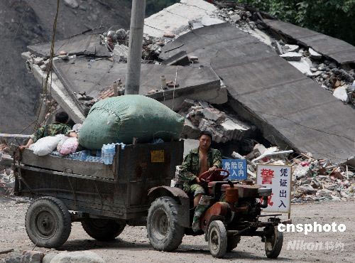 四川汶川大地震破壞最嚴(yán)重的震中地區(qū)映秀鎮(zhèn),六月中旬有許多村民開拖拉機(jī)返鄉(xiāng),準(zhǔn)備重建家園。中新社發(fā) 賈國榮 攝