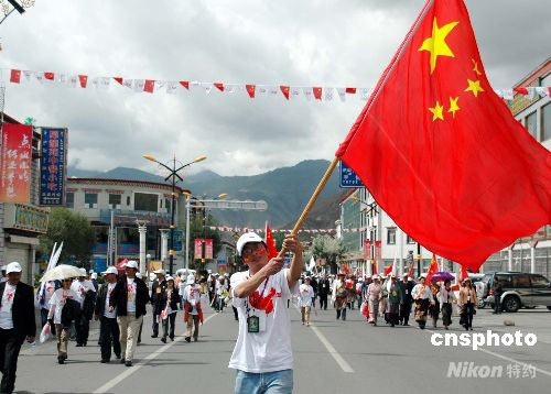 圖:拉薩市民揮舞國旗涌上街頭喜迎奧運火炬