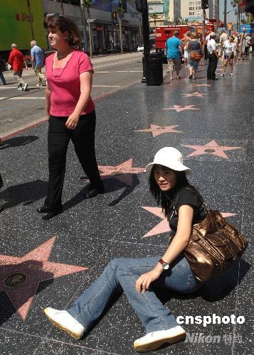 一名來自廣東的游客在好萊塢星光大道上拍照留念。中新社發(fā) 張煒 攝