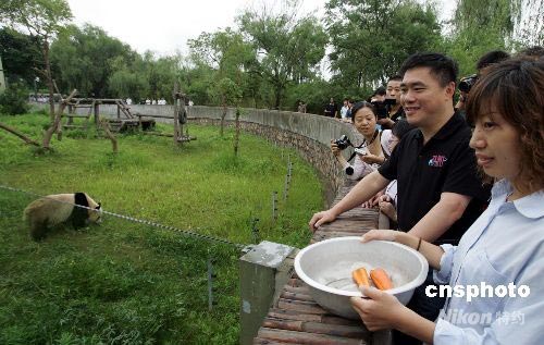 6月25日上午,臺北市長郝龍斌一行到上海野生動物園,看望大熊貓。中新社發(fā) 潘索菲 攝