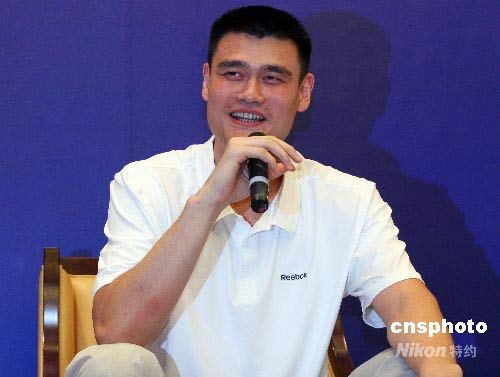 6月26日,剛抵達(dá)北京不久的姚明舉辦新聞發(fā)布會,向公眾介紹自己的傷勢恢復(fù)情況以及“姚基金”的籌備運(yùn)作情況。他在回答記者提問時(shí)笑稱希望能得奧運(yùn)銅牌。中新社發(fā) 富田 攝