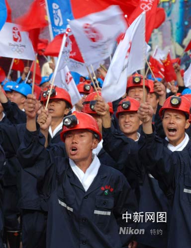 大同礦藏資源豐富,素有“煤都”之稱,是我國(guó)重要的優(yōu)質(zhì)動(dòng)力煤生產(chǎn)基地。圖為煤礦工人來到火炬?zhèn)鬟f現(xiàn)場(chǎng),為奧運(yùn)加油喝彩。張雷杰 攝
