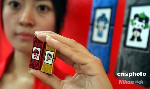 七月二日,北京2008年奧運(yùn)特許商品奧運(yùn)吉祥物電子紀(jì)念章、聯(lián)想火炬閃存盤等正式推向市場。特別是聯(lián)想奧運(yùn)吉祥物閃存盤由于價(jià)格適中、實(shí)用性強(qiáng),一上市就受到消費(fèi)者的喜愛。 中新社發(fā) 任海霞 攝