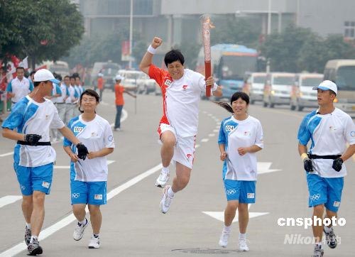圖為楊凌20號火炬手尚希光傳遞時雀躍歡呼。 中新社發(fā) 廖攀 攝
