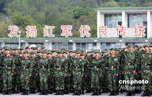 圖為學生們在開營儀式上宣誓。中新社發(fā) 張勤 攝