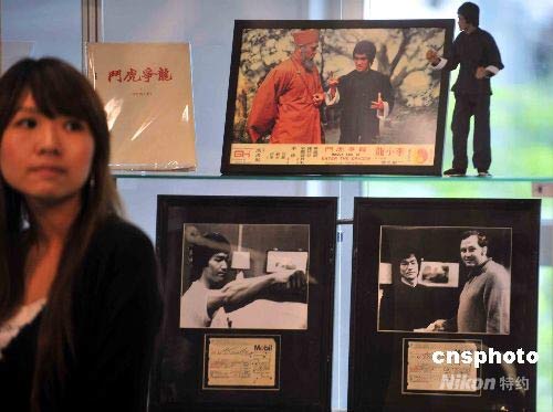 “李小龍電影收藏品展覽會(huì)” 十八日起在香港舉行,展品約八百多件,當(dāng)中不乏珍貴收藏,例如各國不同版本的電影海報(bào)及劇照等。中新社發(fā) 譚達(dá)明 攝