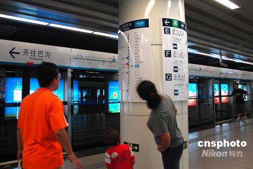7月19日,北京軌道交通機(jī)場線、地鐵10號(hào)線(一期)、奧運(yùn)支線等三條線路試運(yùn)營開通。地鐵10號(hào)線是連接北京東部和北部的一條重要軌道線路,一期全長25公里。圖為在地鐵10號(hào)線芍藥居車站中,乘客觀察站牌。中新社發(fā) 張雙雙 攝