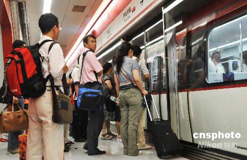 7月20日,由北京東直門公交樞紐通往首都機(jī)場(chǎng)T2、T3航站樓的機(jī)場(chǎng)快軌迎來(lái)開通后的第二天,由于當(dāng)日啟動(dòng)奧運(yùn)單雙號(hào)限行措施,旅客人數(shù)明顯增加。據(jù)悉,乘坐機(jī)場(chǎng)快軌16分鐘即可從東直門抵達(dá)首都國(guó)際機(jī)場(chǎng)。中新社發(fā) 王宇婷 攝