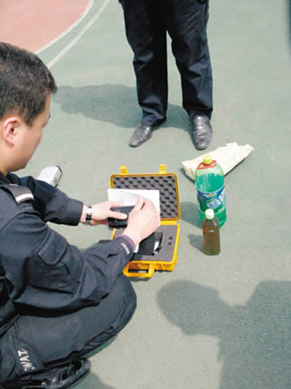 這種手持流體探測儀,是一種獨特的革新產(chǎn)品,它主要被用來對密封容器內(nèi)的易燃易爆液體進行無接觸的探測。它能快速安全地檢查各種不同材質(zhì)容器內(nèi)的液體,而且不需要破壞容器上的封印或者標簽。探測儀就放在一個手提包大小的黃箱內(nèi)。在現(xiàn)場,一名特警拿出感應器,分別對飲料和汽油進行測驗。當感應器貼近飲料,指示燈為綠色,說明容器內(nèi)的液體為非可燃性;貼近汽油,指示燈為紅色,說明液體具有危險性!斑@種探測器靈敏度高,能實時顯示探測結(jié)果?梢哉f,是液體危險品的克星”。