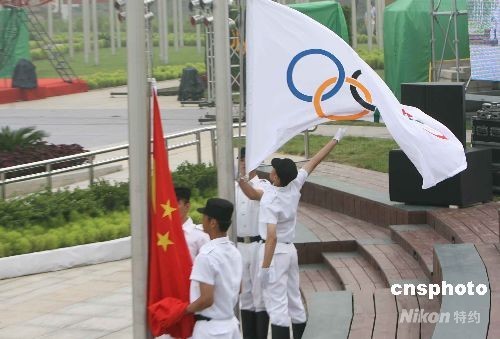7月27日,北京奧運(yùn)會(huì)的運(yùn)動(dòng)員之家——奧運(yùn)村正式開(kāi)村,來(lái)自205個(gè)國(guó)家和地區(qū)的16000名運(yùn)動(dòng)員和隨隊(duì)官員將逐步入住。圖為五環(huán)旗在奧運(yùn)村升起。中新社發(fā) 武仲林 攝