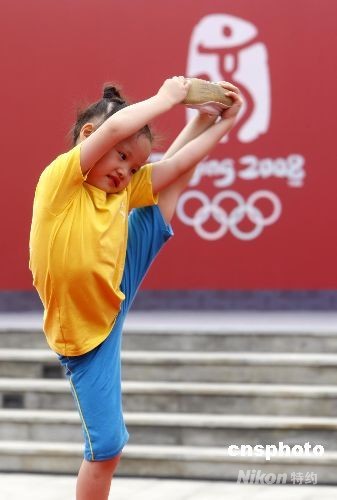 7月27日,北京奧運(yùn)村正式開村。一名參加表演的女孩在開村儀式前做準(zhǔn)備活動。 中新社發(fā) 杜洋 攝