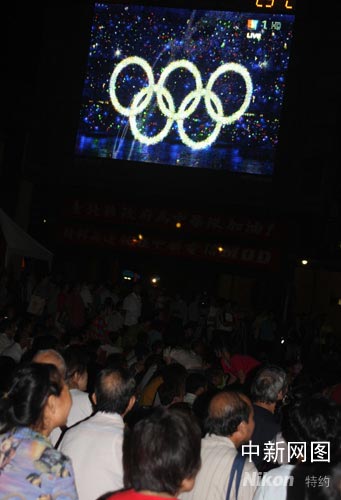 8月8日晚,作為大臺北地區(qū)最大的戶外轉(zhuǎn)播場所,臺北縣縣民廣場聚集了約2000名民眾。他們無分男女老幼,大部分席地而坐,借助超大屏幕欣賞并感受北京奧運會開幕式帶來的震撼。 作者:董會峰