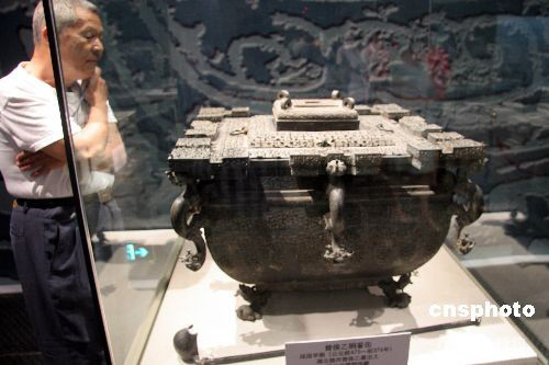 圖:中國科技館新館展出戰(zhàn)國早期銅鑒缶