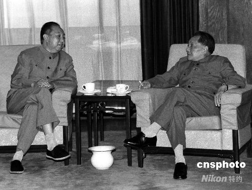 曾擔任中國共產(chǎn)黨和國家重要領導職務的華國鋒,因病醫(yī)治無效,于2008年8月20日12時52分在北京逝世,享年87歲。資料圖為1987年,鄧小平與華國鋒在出席全國人民代表大會全體會議期間在休息室交談。中新社發(fā) 呂相友 攝
