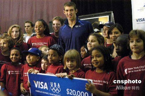 圖:菲爾普斯紐約力推兒童游泳項目