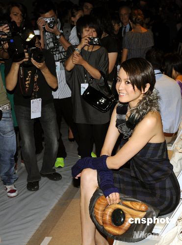 當?shù)貢r間9月8日晚,在美國紐約市布萊恩特公園舉行的“2009紐約時裝周”上,香港明星梁詠琪,身著皮草圍脖搭配呢質(zhì)小禮服,到場觀秀,成為紐約時裝周上一個亮點。中新社發(fā) 曹堂 攝