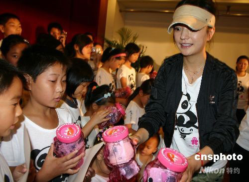 圖:趙薇為四川地震災(zāi)區(qū)學(xué)生發(fā)放助學(xué)基金