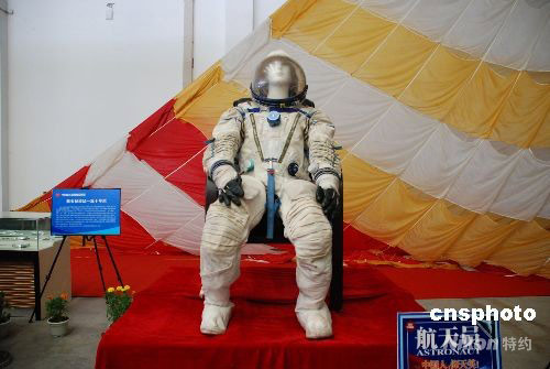 圖為價(jià)值五百萬元的宇航服實(shí)物展品首次在中國國內(nèi)公眾面前亮相。