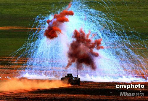 9月16日,中國人民解放軍參加“礪兵--2008”演習(xí)部隊進(jìn)行實兵對抗訓(xùn)練。訓(xùn)練依山地復(fù)雜地形進(jìn)行機械化立體進(jìn)攻、防守,突出機械化、信息化、立體化現(xiàn)代作戰(zhàn)特點。中新社發(fā) 宋吉河 攝
