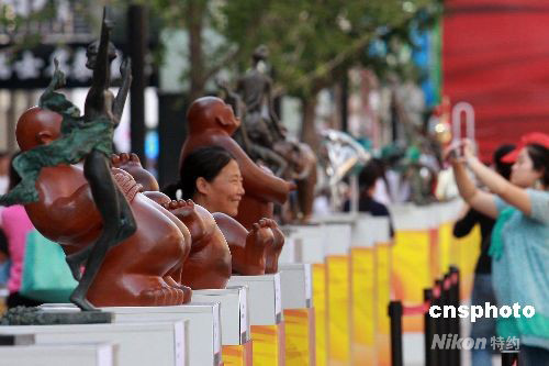 9月22日,奧林匹克藝術(shù)品亮相北京王府井大街,參觀游客絡(luò)繹不絕。 中新社發(fā) 鄭雄增 攝