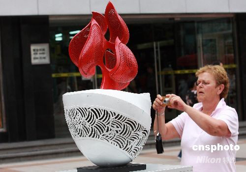 圖:奧林匹克藝術(shù)品《圣火之夢》吸引外國游客