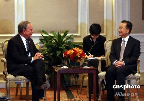 9月23日下午,中國總理溫家寶在紐約會見紐約市長彭博。中新社發(fā) 李靜 攝