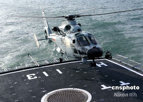 9月下旬,海軍某艦載機部隊載直升機進行著艦訓(xùn)練。中新社發(fā) 鄢潤波 攝