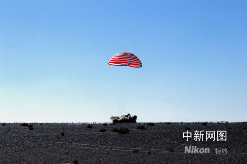 中國神舟七號載人航天飛船發(fā)射在即。圖為船空投試驗(資料圖片)。袁明月 攝