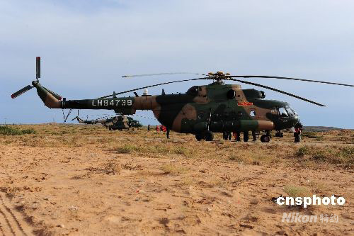 圖為擔(dān)負(fù)空中搜救任務(wù)的陸航直升機(jī)在主著陸場(chǎng)區(qū)待命。中新社發(fā) 周敬波 攝