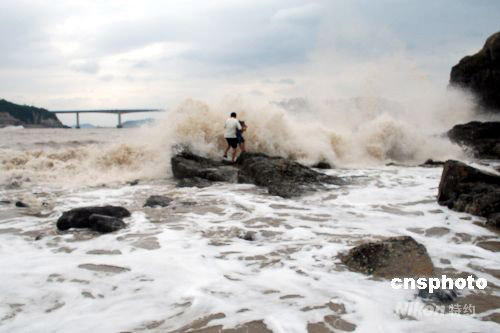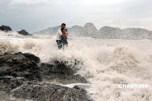 9月28日,受超強(qiáng)臺(tái)風(fēng)“薔薇”影響,浙江溫州市洞頭島海域已是波濤洶涌,海礁上掀起的巨浪高達(dá)10多米。下午2時(shí)許,一對(duì)外地父女在海邊游玩時(shí)不慎被突漲的潮水困在礁石上,隨時(shí)可能被海浪吞噬。正在海邊巡邏的洞頭邊防大隊(duì)官兵發(fā)現(xiàn)險(xiǎn)情后,迅速展開緊急營(yíng)救,成功將父女從海浪中安全救上岸。中新社發(fā) 吳水斌 攝
