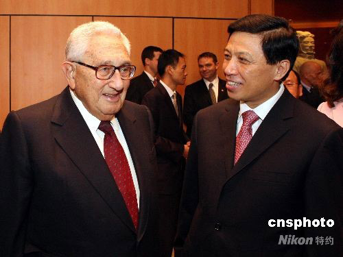 中國(guó)常駐聯(lián)合國(guó)代表團(tuán)29日晚舉辦中國(guó)國(guó)慶59周年招待會(huì),美國(guó)前國(guó)務(wù)卿基辛格出席,中國(guó)新任常駐聯(lián)合國(guó)代表張業(yè)遂與基辛格親切交談。中新社發(fā) 李靜 攝