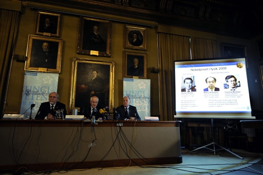 瑞典皇家科學(xué)院諾貝爾獎(jiǎng)委員會(huì)10月7日宣布,將2008年度諾貝爾物理學(xué)獎(jiǎng)授予美國籍科學(xué)家南部陽一郎(Yoichiro Nambu),以及日本科學(xué)家小林誠(Makoto Kobayashi)和益川敏英(Toshihide Maskawa)。他們都在基本粒子夸克的研究上有突出成就。
