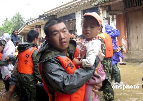 海南文昌遭受連續(xù)三天的暴雨襲擊,全縣多處遇險(xiǎn),其中兩名村民遇難。文昌部隊(duì)官兵全部出動(dòng),協(xié)助當(dāng)?shù)卣购榫葹?zāi),轉(zhuǎn)移群眾,搬運(yùn)物資。中新社發(fā) 蔣第二 攝