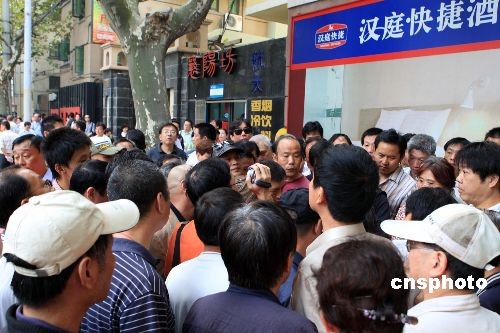 10月20日,眾多上海市民聚集在上!案咴骸边呴T襄陽路上,等待“楊佳襲警案”的審判。當日上午,“楊佳襲警案”在上海市高級人民法院第五法庭繼續(xù)二審,法庭宣布駁回上訴,維持原判。中新社發(fā) 潘索菲 攝