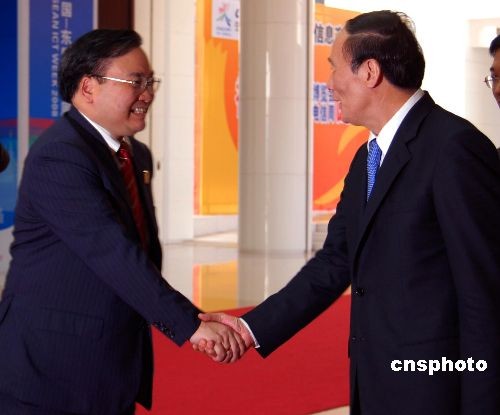 中國(guó)國(guó)務(wù)院副總理王岐山(右)在廣西南寧會(huì)見(jiàn)了越南副總理黃忠海一行。